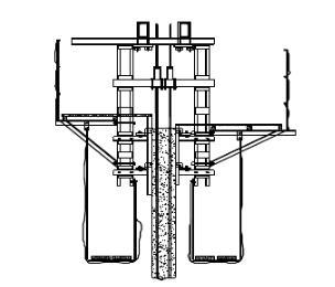 (4)砼采用机械振捣,振捣时不得触碰支承杆、钢筋和预埋件、模板,滑升过程中应停止振捣,并停止支承杆的加固作业。