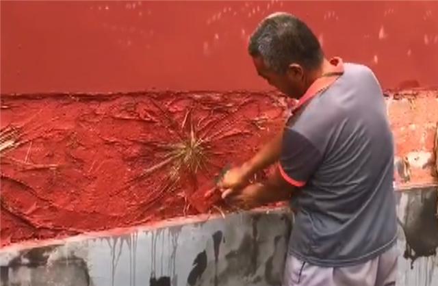 近日,有网友拍下了故宫修葺宫墙的画面,视频中师傅在抹墙前在墙体上钉上了一团"枯草",该手法引发了网友的热议。