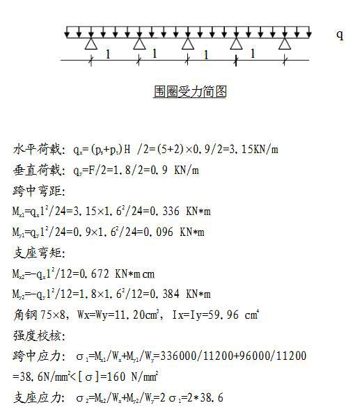 由此可见75*8角钢围圈强度、刚度均满足规范要求。