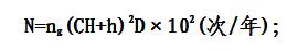 基站铁塔超过一定高度时,雷击的次数与铁塔高度的平方成正比例的增加,也就是说铁塔超过一定高度后,受雷击的机会将显著的增多。铁塔每年遭受雷击次数(N)的估算公式为: