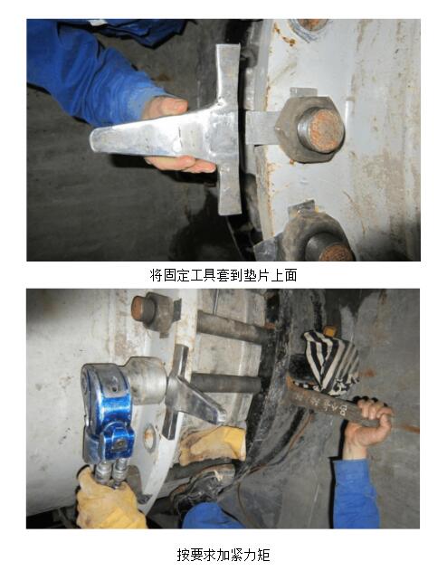 1)法兰栓接作为管道安装工作的重要组成部分,面对数以百计的管线连接任务,不采取灵活便捷的办法必定会拖延工程进度,在提取以往工作经验的基础上,管道队总结了安装技巧,即在不影响力矩操作的前提下,将止动垫片的侧耳以适当的力道弯折出一个角度,安装法兰时就可以轻松顺畅,节省锁片敲定的时间和人力。