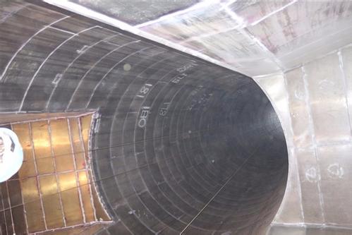 烟囱内衬防腐材料需要具备以下性能特征,才能够保证整个电厂安全运行及烟囱自身结构安全,与基体材料有非常好的粘接力,优良的耐化学腐蚀能力,特别是防腐涂料耐酸液腐蚀的能力,良好的柔韧性,能抵抗钢烟囱不可避免运行振动,优异的耐高温和耐温度交变性能,应可满足工作温度长期在45~160℃之间波动,短期运行温度480℃。